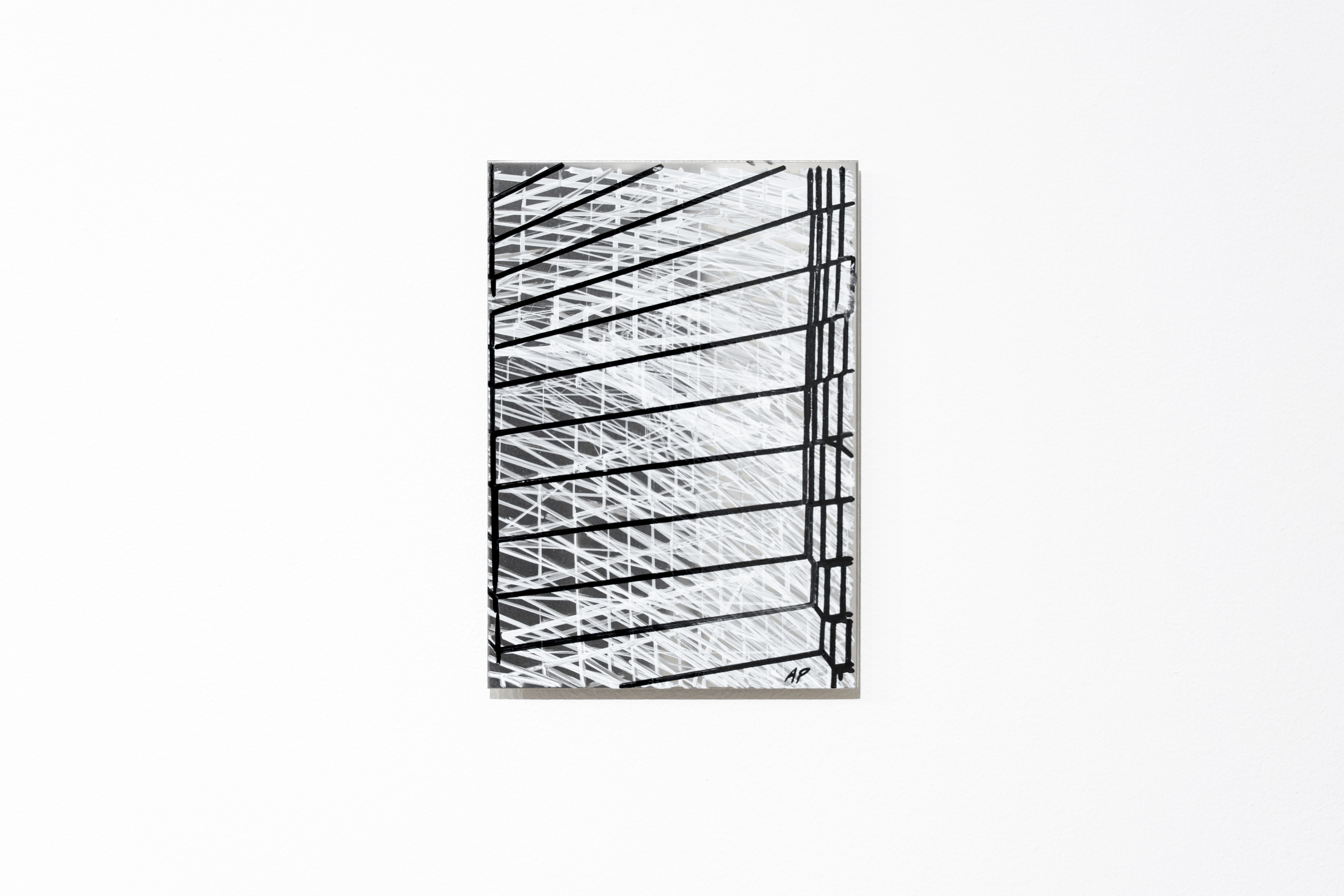 Machine and hand-drawn oil paint on Bright Annealed Stainless Steel, 16 Tiles,