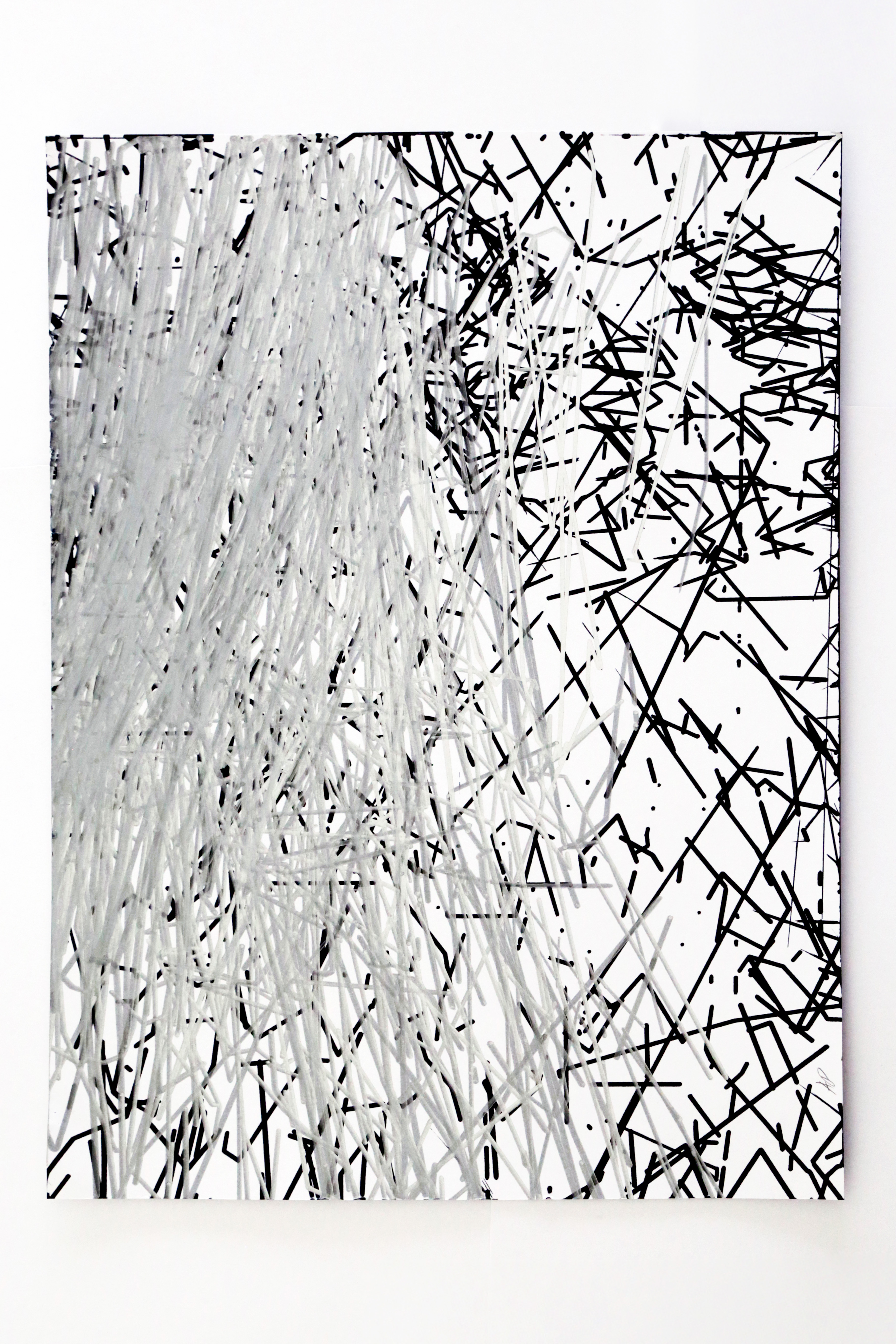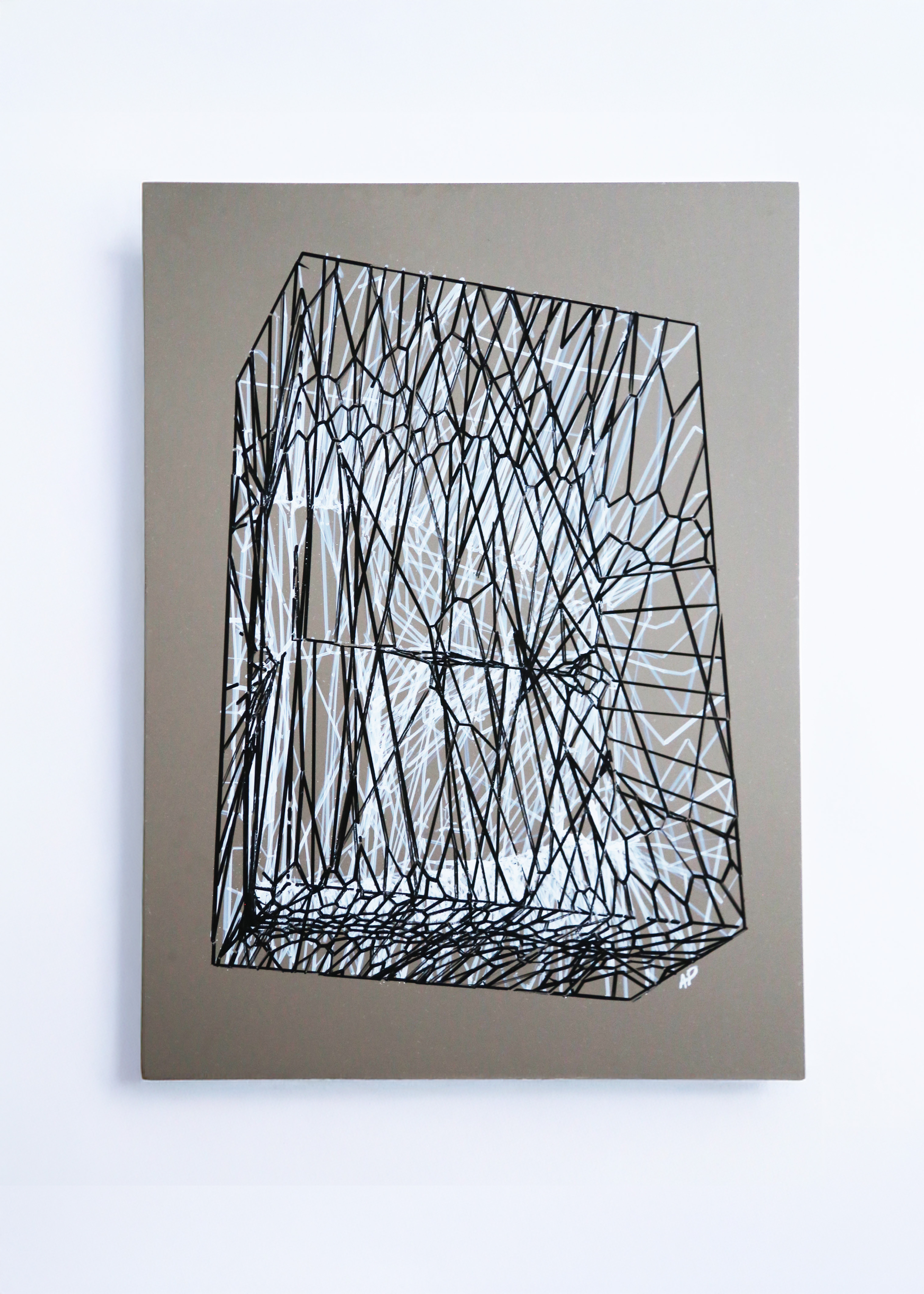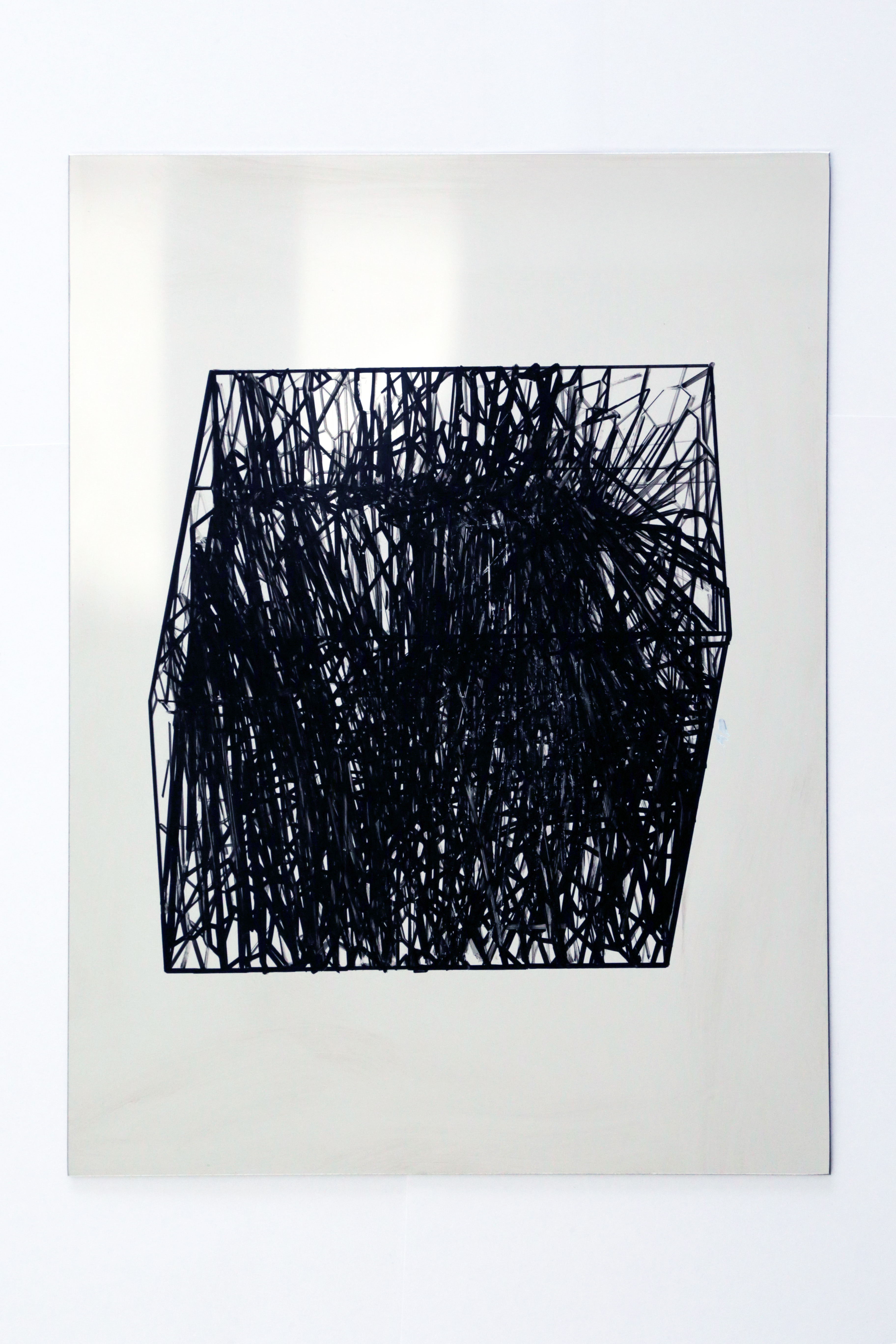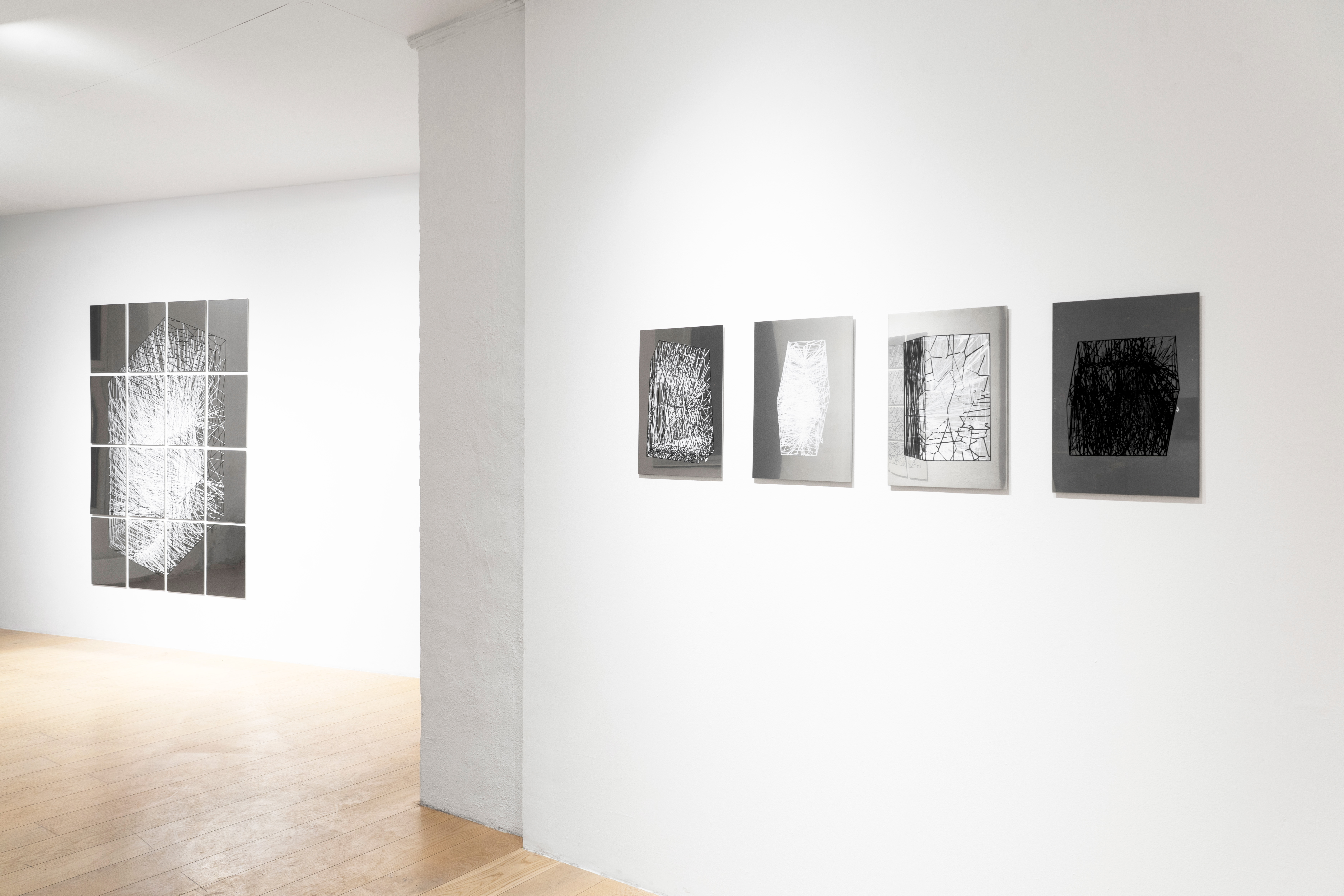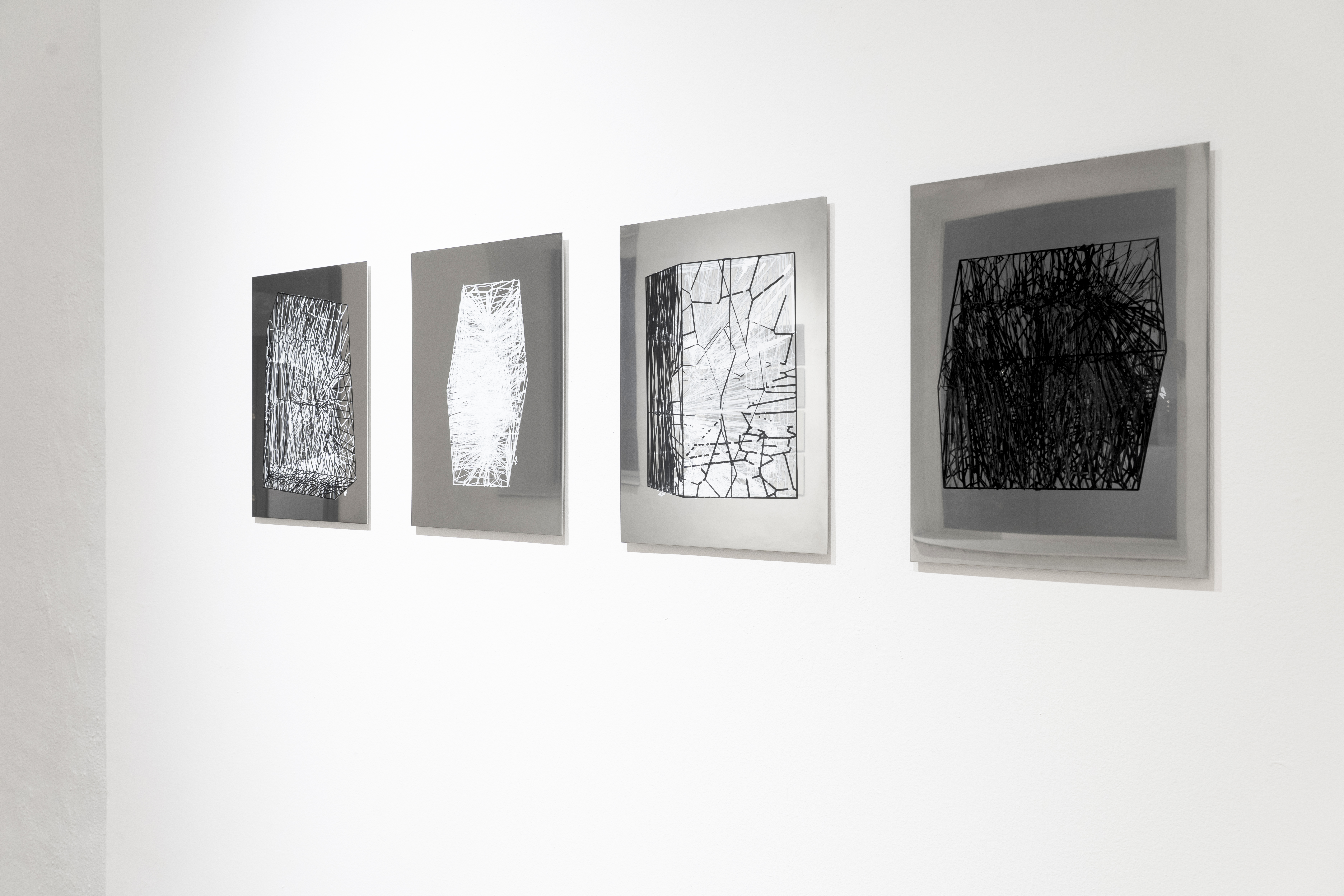 The reflective surfaces of the stainless steel panels invite viewers to encounter themselves within the visualised volumes, composed of thousands of faceted connections generated through parametric modelling and realised through a collaborative process between machine and human intervention in oil paint. This encounter prompts reflection on how algorithmic systems mediate subjectivity and self-perception, and how contemporary culture is increasingly shaped by algorithmic agendas.